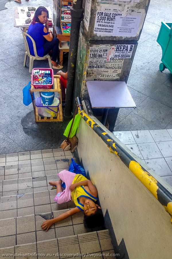 Right by the gates of Intramuros, next to the mountain-like walls on the first photo. Manila is a paradise for some, but a tough spot for great many.