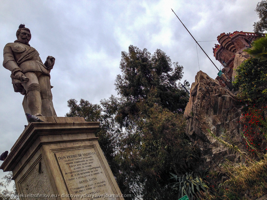The statue of don Pedro de Valdivia, the founder of Santiago, on Cerro Santa Lucía. He looks rather sad here, perhaps because he ended up captured and executed by the Mapuches.