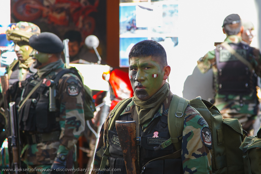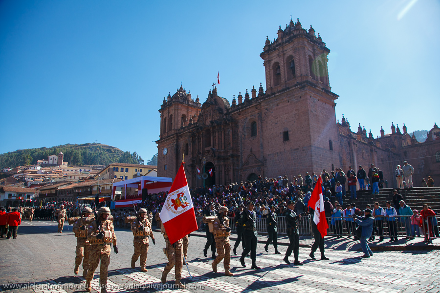 I happened to be in Cusco at the time of the Peru independence celebrations, at the very peak of the busy season. The independence holiday here is a four day long weekend. So on my very first day on the main square, Plaza de Armas (which basically means Parade Square) there was a parade of military units and gymnasium pupils, both wearing catchy uniforms.