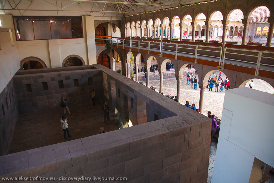 Cusco’s streets are very narrow, and at the same time perfectly straight, held from two sides by the high walls of city houses consisting of huge stones. All these churches and Spanish nobility houses were built over the Inca palace foundations. These foundations determine the plan of today’s city.